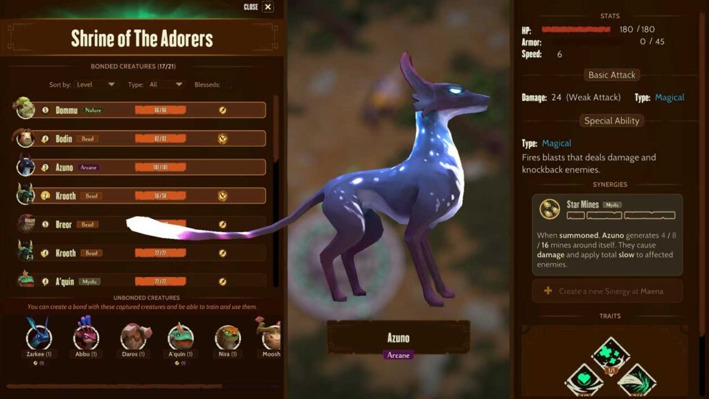 Ang mga yugto ay nahahati sa mga silid, at pagkatapos makumpleto ang bawat silid, ang mga nilalang ay magiging berde mula sa itim, na nagpapahiwatig na maaari kang sumulong. Maaaring mayroon ding orihinal na orb na makokolekta mo, nagbibigay ito sa iyo ng instant boost ng stat at magagamit mo ang orb sa alinmang Draknar statue/altar para magbukas ng isa pang available na slot (hanggang 4 sa kabuuan) o para sa Bigyan ang isa sa kanila isang pagsubok. Ang mga nilalang na pinaamo na ngayon ay may sariling mga pag-upgrade/kakayahan. Ako ay ganap na walang kamalayan sa kakayahang i-unlock ang slot ng nilalang, kaya noong una ay naglaro lang ako sa isang nilalang.