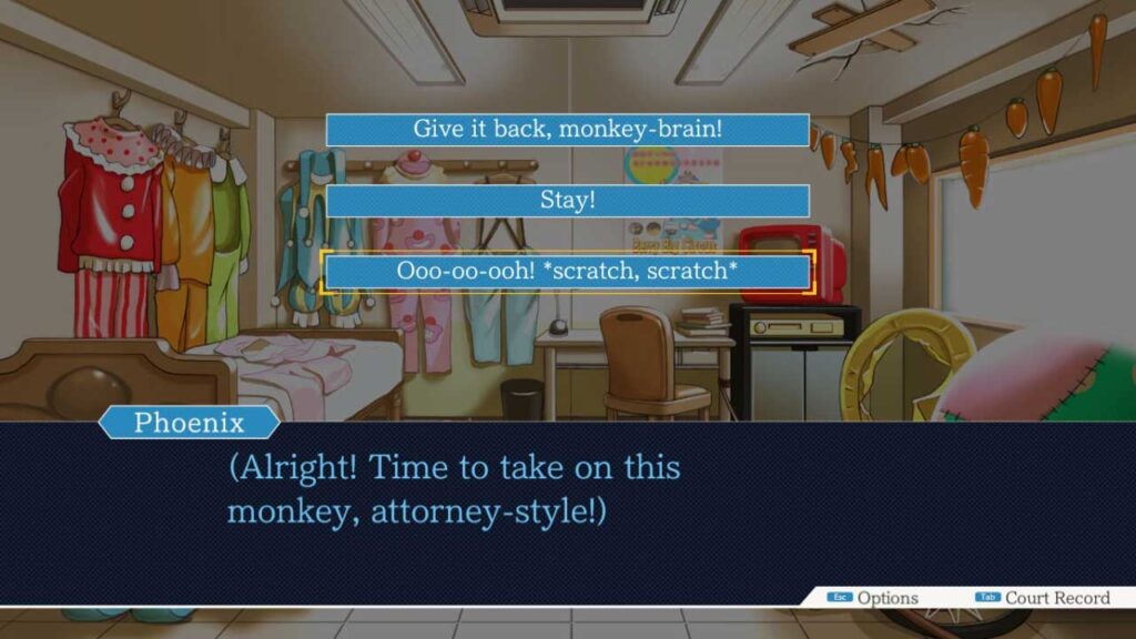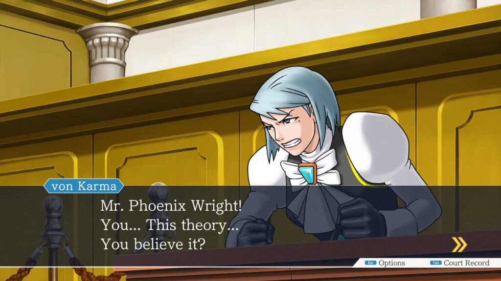 Ang lahat ng kaguluhan sa laro ay nauugnay sa pagsigaw na ginagawa mo, ang hukom at ang tagausig, at sa wakas kapag ang iyong mga salita ay nagbunga, ikaw ay magiging napakasaya. Talagang nagustuhan ko ang mga sandaling ito ng laro at naramdaman kong naroroon talaga ako sa isang tunay na korte. Gayunpaman, huwag isipin na ang laro ay may isang simpleng gameplay, dahil sa karamihan ng mga kaso, haharapin ka nito sa mga desisyon na maaaring maging mapaghamong. Ang mga pagpipiliang ito ay sinusunod sa anyo ng isang visual na laro ng oras sa pamamagitan ng pagpapakita ng iba’t ibang mga opsyon.