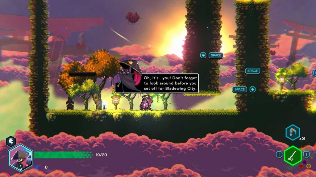 Sa laro, gumaganap ka bilang Hildalgo, ang pinuno ng Bladewing, na ang mga kaibigan ay napinsala ng mga uwak, at dapat kang gumamit ng talim (na halos kapareho ng club trap) upang palayain ang kanilang mga kaluluwa upang makalaya mula sa katiwalian at palayain sila. Kawili-wiling kuwento, kawili-wiling konsepto, mas magandang biswal na istilo na cyberpunk.