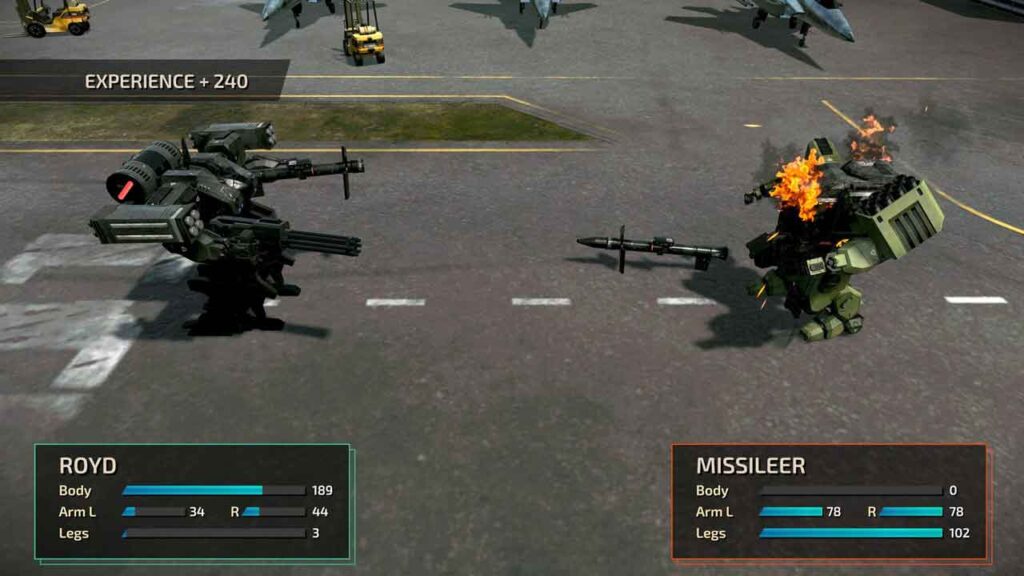 Ang mga laban ay nakabatay sa turn-based at lahat ng unit ay maaaring gumalaw at umatake nang hiwalay. Ang lahat ng mga kaalyado, na sinusundan ng lahat ng mga kaaway, ay isa-isang kikilos. Kung hindi mo gustong makita silang lahat sa bawat oras, may mga mabilis at madaling opsyon para laktawan ang mga animation, at pagkaraan ng ilang sandali ay tiyak na gagamitin mo ang mga ito upang bawasan ang oras ng filler. Ang bawat Wanzer ay may tiyak na halaga ng HP para sa parehong mga braso, binti at katawan – kung ang huli ay nawasak, ang yunit ay masisira, habang ang iba pang mga bahagi ay hindi nagpapagana ng mga armas at nakakagambala sa paggalaw kung umabot sila sa zero HP.
