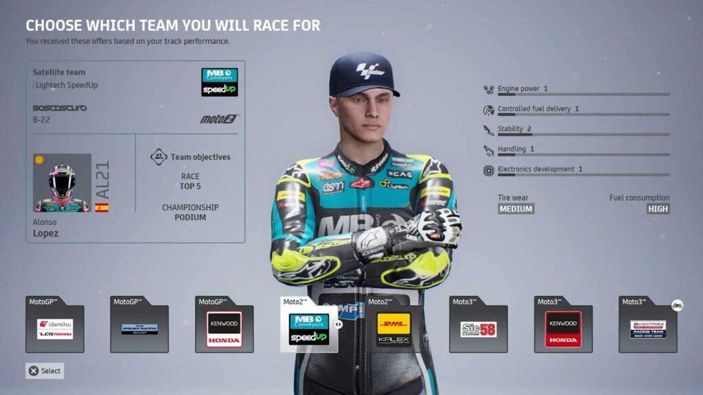 Tiyak na ang pinakamalaking lukso pasulong sa MotoGP 23 ay ang seksyong “Career Mode” nito, na isang napakagandang karagdagan. Ang Italyano na developer na si Milestone ay medyo binago ang paraan kung paano namin magabayan ang isang rider sa mga sub-category ng motorsiklo. Sa katunayan, sa The Career mode kailangan mong piliin ang koponan na iyong sasabak, sa seksyong ito ay makakatanggap ka ng mga alok batay sa iyong pagganap sa iba pang mga kompetisyon sa pagmomotorsiklo, na kinabibilangan ng mga tatak tulad ng MotoGP, Moto2 at Sila ay naging Moto3. Simula sa Moto3, kailangan mong gawin ang iyong paraan sa labanan upang makuha ang atensyon ng Moto2 o kahit na mga koponan ng MotoGP.