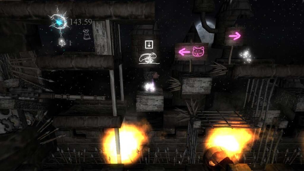 Ang isang kawili-wiling ideya na ginamit sa gameplay ng The Prisoner of the Night ay ang mekanismo ng pagpapalit ng mga damit, na nagbibigay-daan sa iyong gamitin ang mga ito para sa iba’t ibang kakayahan. Maaaring gumamit si Nartide ng iba’t ibang mga costume na kinokolekta niya sa daan. Halimbawa, mayroong isang prinsesa na damit na, salamat sa kanya, ay maaaring manatiling nakalutang nang ilang sandali pagkatapos tumalon, na tumutulong sa kanya na tumawid sa ilang mahabang puwang. Kahit na nilalaro ko ito sa isang xbox controller, ang control scheme ay medyo awkward para sa mga controllers. Dahil hindi mo maaaring i-remap ang mga kontrol.